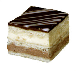 gefüllt mit Vanille-Crème und überzogen mit Schokoladen-Fondant.